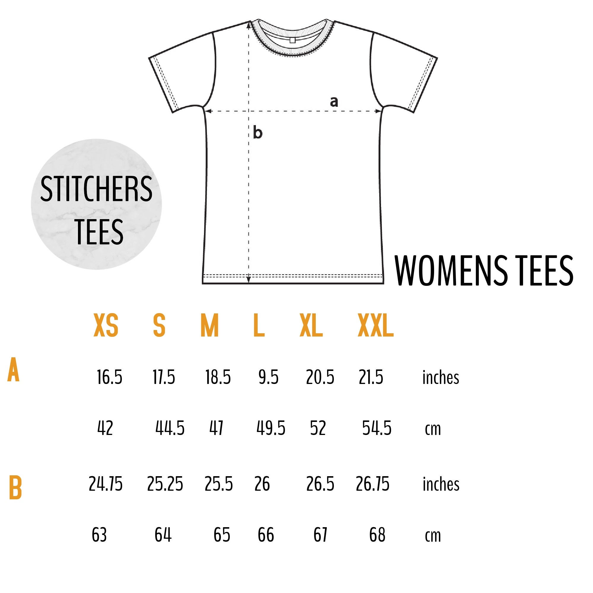 See the size table in the photographs for sizing info. The measurement listed is the actual size of the t-shirt around the chest. If you're unsure what size to choose, find a t-shirt you already own and love the fit of and measure that, then find the size that best matches that measurement.